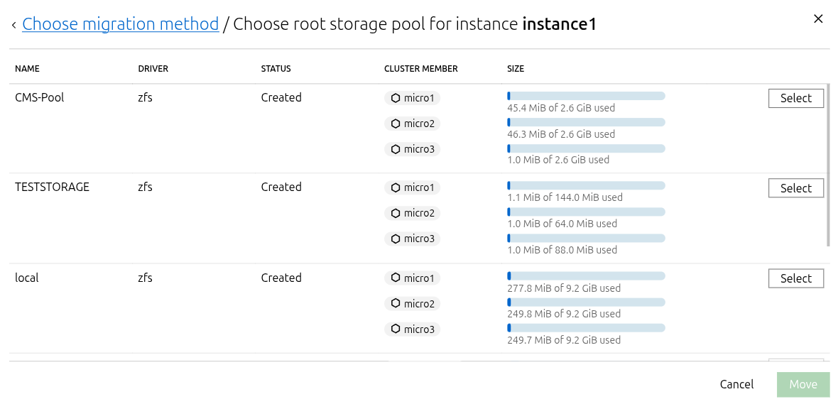 To use a different storage pool when creating or launching an instance, add the --storage flag. This flag overrides the root disk device from the profile. For example: